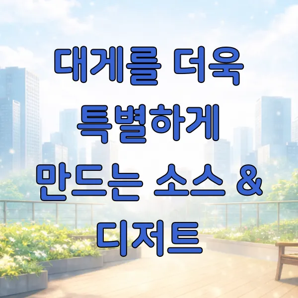 대게 자체의 맛도 훌륭하지만, 맛있는 소스와 달콤한 디저트가 더해지면 그 맛이 더욱 풍성해집니다. 각기 다른 매력을 가진 소스와 달콤한 마무리까지 준비해 보세요.